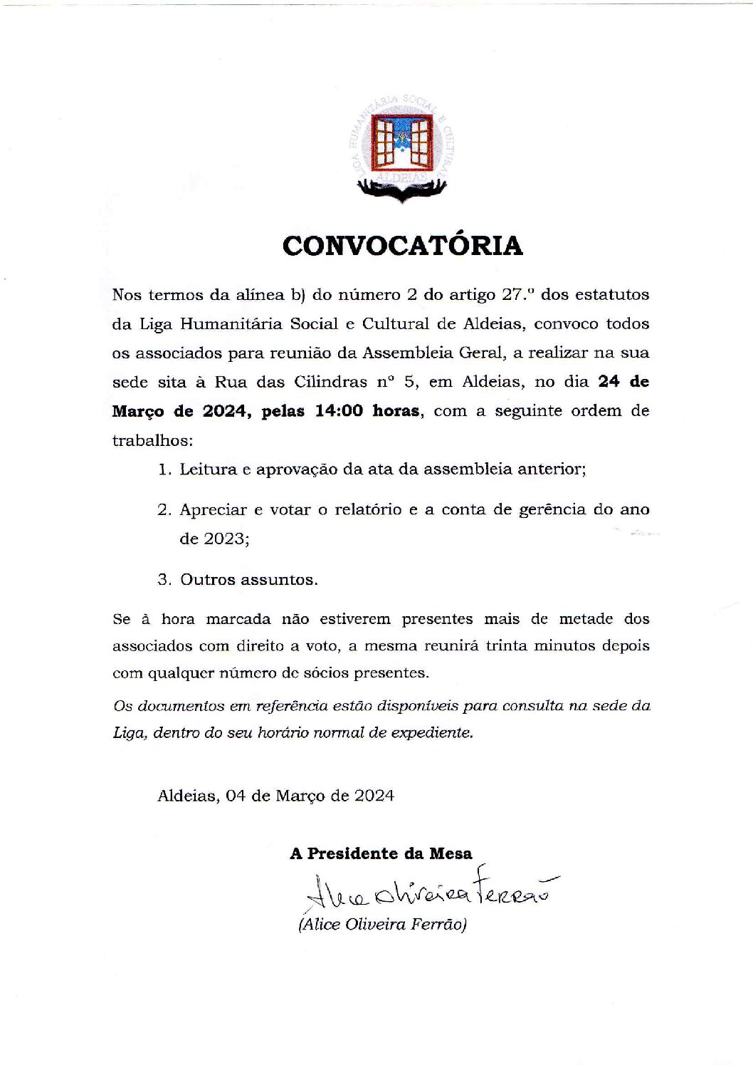 - 15 de Março, 2024 - CONVOCATÓRIA Nos termos da alínea b) do número 2 do […]