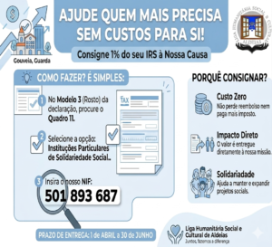 Ao consignar 1% do seu IRS à Liga Humanitária Social e Cultural das Aldeias, está a ajudar-nos a continuar este trabalho com mais qualidade, mais recursos e mais capacidade de resposta.